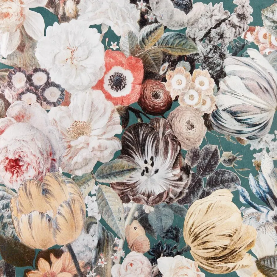 Sfeervol vliesbehang met een bloemenprint. Plakken met Perfax Roll-On.