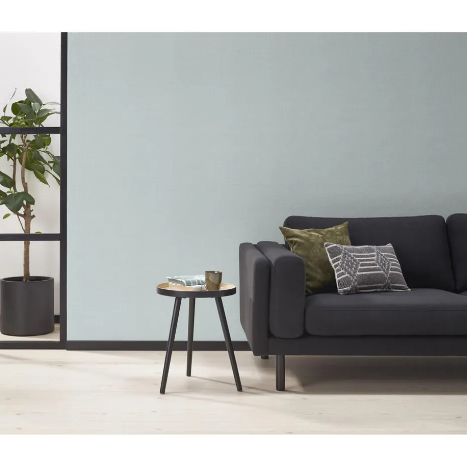 Vliesbehang lichtblauw met licht reliëf. Plakken met Perfax.