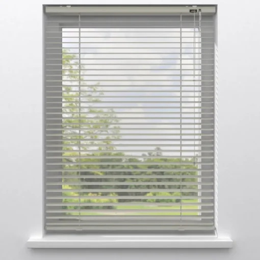 Deze beige aluminium jaloezie 25mm heeft een luxe uitstraling doordat de lamellen een matte afwerking hebben en geen licht weerkaatsen. De jaloezie heeft meekleurende ladderkoorden, een aluminium systeemkleur en een transparante tuimelstaaf en cilindervormige koordhanger. De eindkappen zitten in de cassette verwerkt en hebben een transparante kleur. Met de handmatige bediening bepaal je eenvoudig de mate van lichtinval en privacy. De jaloezie is vochtbestendig, eenvoudig schoon te maken en geschikt voor keukens en badkamers. Op maat te maken en eenvoudig met de juiste afmetingen te bestellen. Geschikt voor zijgeleiding en draai-kiepramen. Niet volledig verduisterend.