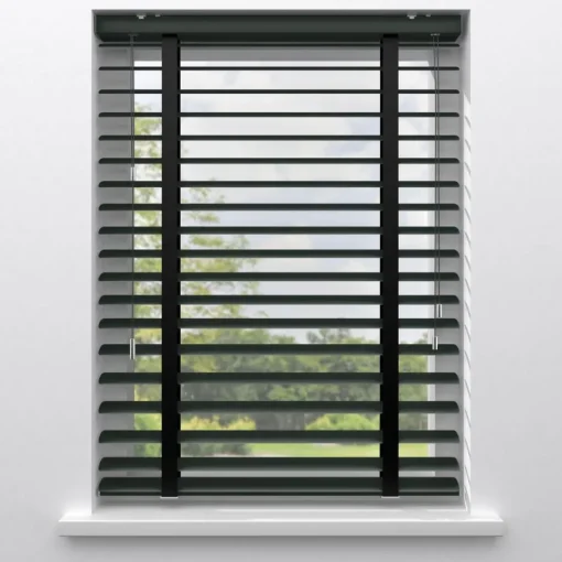 Deze antraciet aluminium jaloezie 50mm heeft een luxe uitstraling doordat de lamellen een matte afwerking hebben en geen licht weerkaatsen. De jaloezie heeft een cylindervormige metalen koordhanger, een aluminium systeemkleur en meekleurende eindkappen. Je hebt de keuze uit een ladderkoord of een ladderband. Kies je voor een ladderband, dan heb je de keuze uit diverse kleuren. De bediening is elektrisch of handmatig. Voor de handmatige bediening gebruik je koorden en geen tuimelstaaf. De jaloezie is vochtbestendig, eenvoudig schoon te maken en geschikt voor keukens en badkamers. Op maat te maken en eenvoudig met de juiste afmetingen te bestellen. Geschikt voor zijgeleiding en draai-kiepramen. Niet volledig verduisterend.