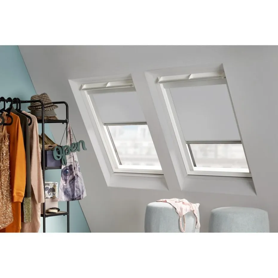 Dakraamrolgordijn lichtgrijs. Ideaal voor zolders en slaapkamers. De zilverkleurige coating aan de achterzijde zorgt voor volledige verduistering en reflecteert de warmte. De stof is vochtbestendig. Met de handmatige bediening bepaal je zelf hoeveel licht je binnen wilt laten. Uitgevoerd met RVS aluminium cassette, zijprofielen en onderlat. Af te nemen met een vochtige doek. Geschikt voor ramen van Velux, Fakro en Rooflite.