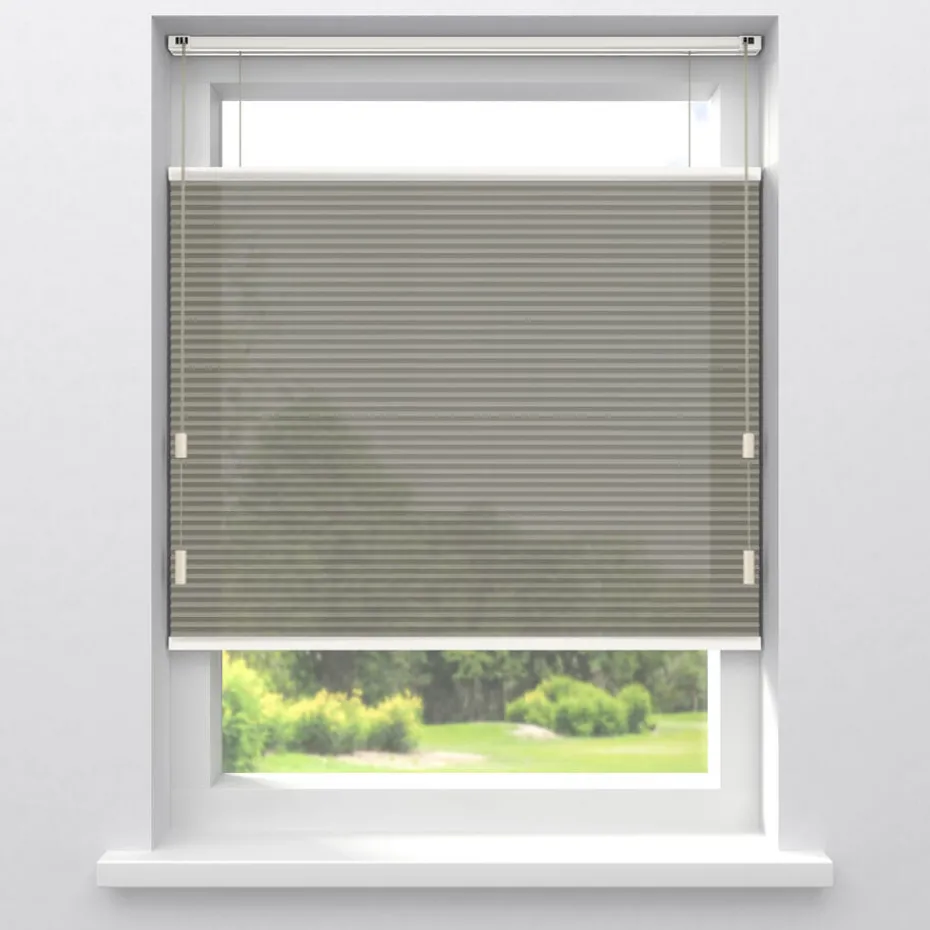 Plisségordijn Dewi taupe is een lichtdoorlatend dubbel plissé gordijn. Dit betekent dat het een honinggraatstructuur heeft en daardoor een luxe uitstraling geeft. Deze structuur zorgt voor een stilstaande luchtlaag, waardoor de warmte binnen blijft voor optimale isolatie en geluiddemping. Dit plissegordijn heeft een plooibreedte van 25mm en is daardoor erg geschikt voor kleine tot middelgrote ramen.