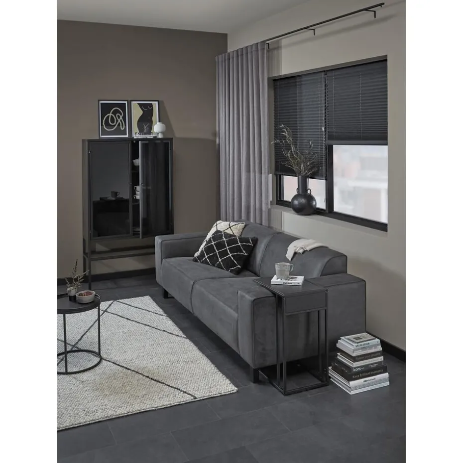 Lichtdoorlatende enkele plissé van effen zwarte stof. Verkrijgbaar als top down, top down bottom up of top down bottom up gespannen. Een top down bottom up gordijn kan zowel aan de bovenkant als de onderkant worden uitgevouwen voor volledige controle over de gewenste lichtinval en privacy. Een gespannen plissé is zeer geschikt voor draaikiepramen omdat de stof goed op zijn plek blijft. Op maat te maken en volledig naar wens samen te stellen. Bepaal zelf de kleur van het systeem en kies uit een bijpassende koordhanger van kunststof, rvs of zwart metaal.