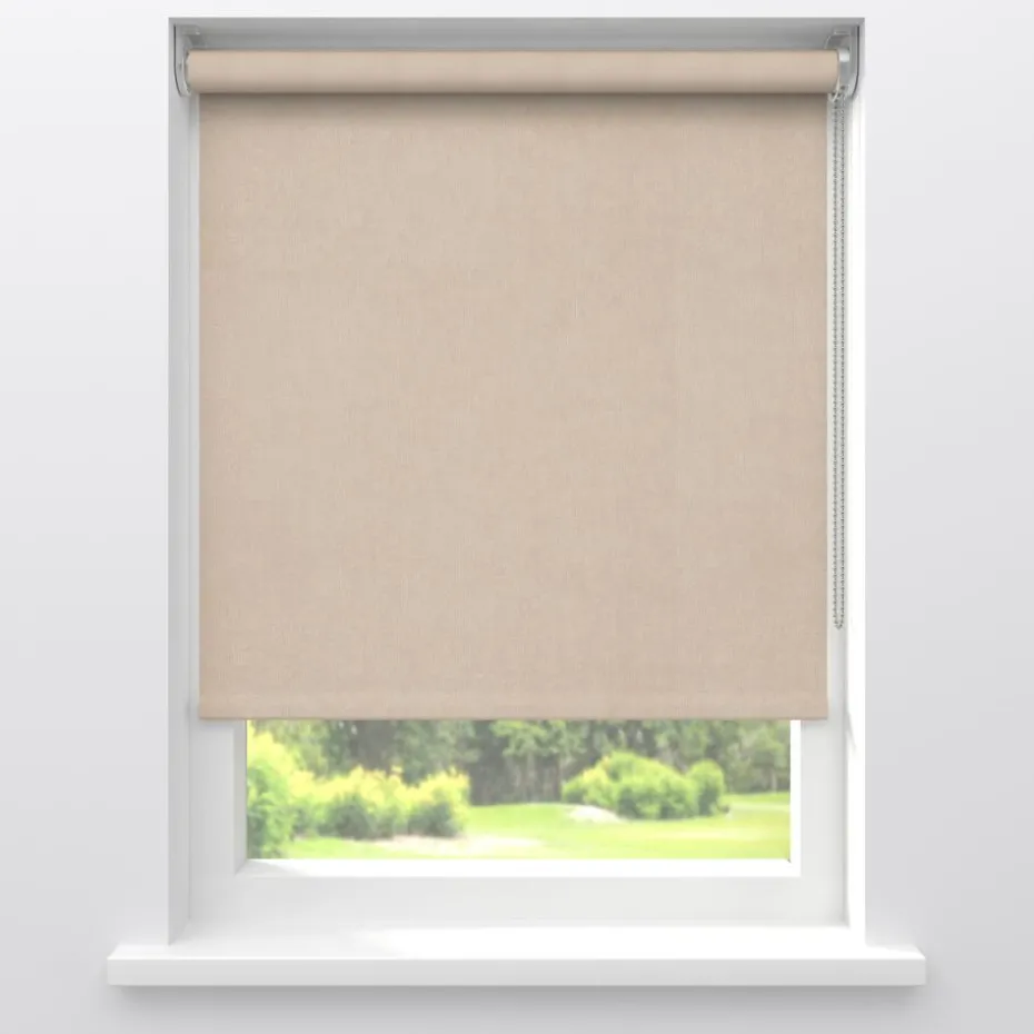 Deels verduisterend rolgordijn Gus Zand in velours met een subtiele structuur. De meekleurende achterzijde zorgt voor 90% verduistering. Ideaal voor slaapkamers maar ook te gebruiken voor keukens en andere woonruimtes. Op maat te maken en volledig naar wens samen te stellen met een ruime keuze uit accessoires en uitvoeringen. Elektrische bediening en zijgeleiding is mogelijk. Ook geschikt voor draaikiepramen. Eenvoudig met een vochtige doek af te nemen.