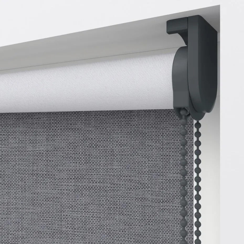 Verduisterend rolgordijn grijs gemêleerd met structuur. De witte achterzijde zorgt voor volledige verduistering. Ideaal voor slaapkamers maar ook te gebruiken voor keukens en andere woonruimtes. Op maat te maken en volledig naar wens samen te stellen met een ruime keuze uit accessoires en uitvoeringen. Elektrische bediening en zijgeleiding is mogelijk. Ook geschikt voor draaikiepramen. Eenvoudig met een vochtige doek af te nemen.