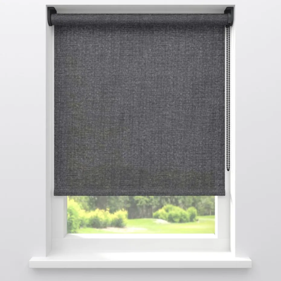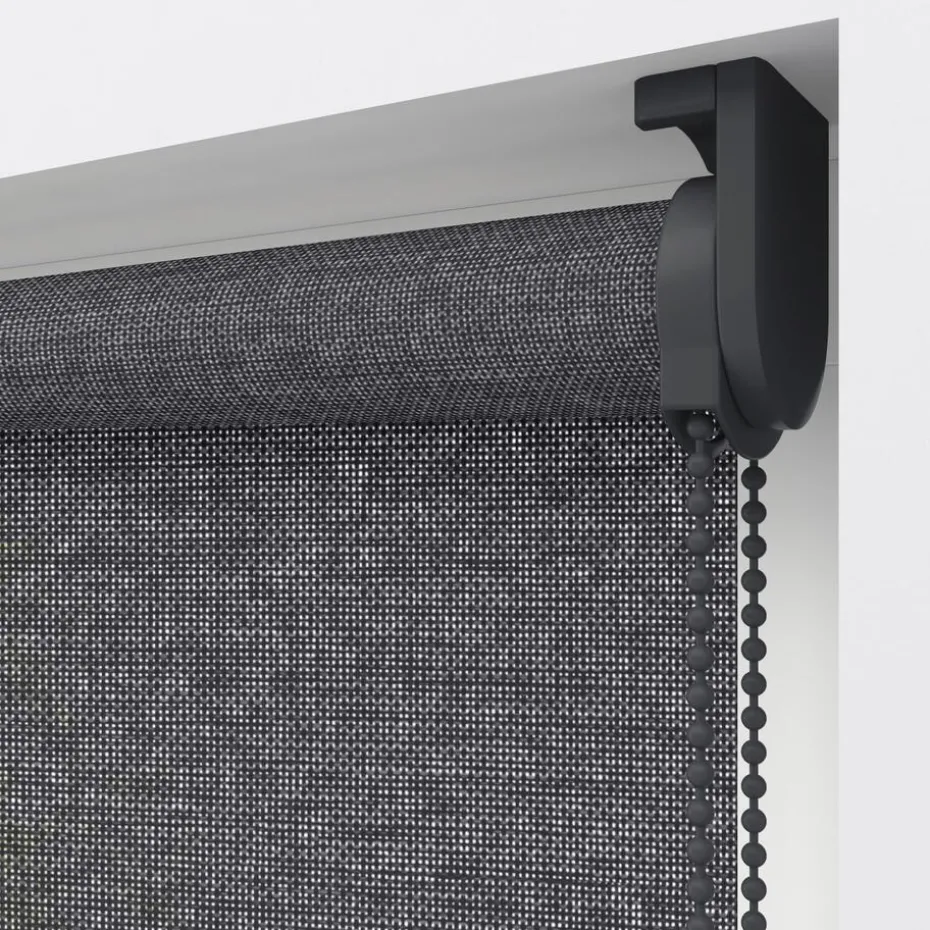Screen rolgordijn donkergrijs met structuur. Op maat te maken en volledig naar wens samen te stellen met een ruime keuze uit accessoires en uitvoeringen. Elektrische bediening en zijgeleiding is mogelijk. Ook geschikt voor draaikiepramen. Eenvoudig af te nemen met een vochtige doek. Screens zijn vooral bekend als zonwerende doeken die vaak buiten voor het raam geplaatst worden. Het materiaal bestaat uit glasvezeldraden met een pvc-coating. Hierdoor is het sterk en heeft het heel veel extra eigenschappen. Een screen rolgordijn filtert het zonlicht, is warmte werend en blokkeert de inkijk. Ook is het vlamvertragend en onderhoudsvriendelijk. Daarnaast zijn ze vocht- en schimmelwerend waardoor ze prima in een badkamer of keuken opgehangen kunnen worden. Het systeem is alleen geschikt voor binnen gebruik en niet voor montage buiten voor het raam.