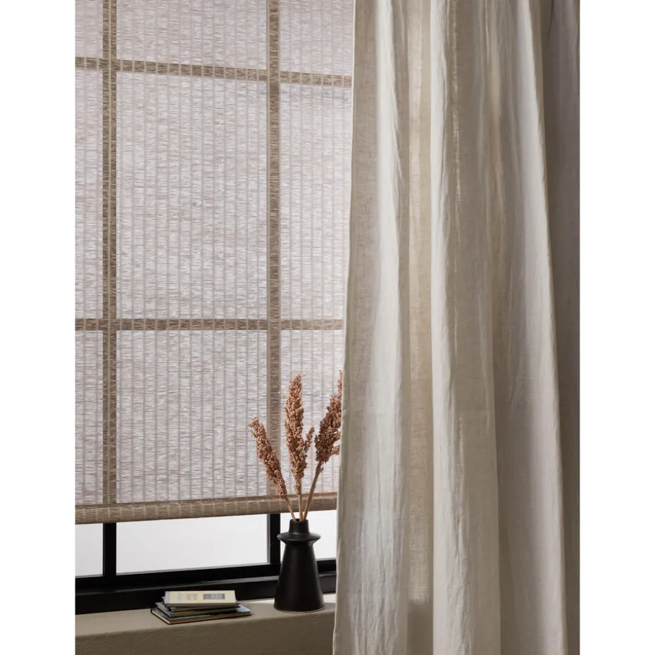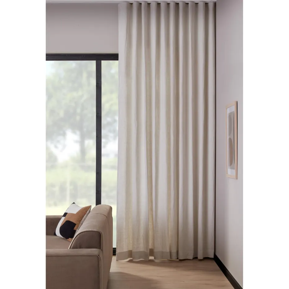 Gordijnstof van soepelvallend naturelkleurig linnen. Pluisvrij, luchtig en sterk. 140 cm breed.
