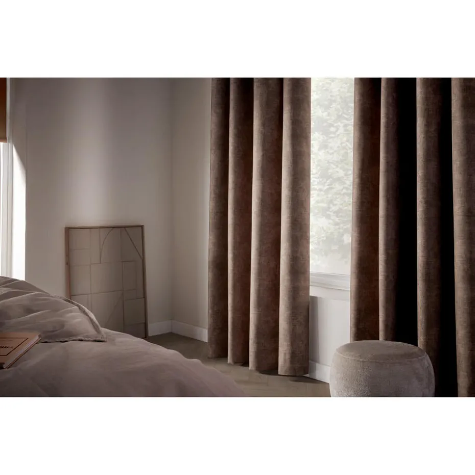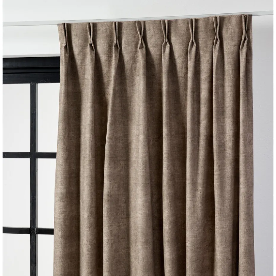Verduisterende gordijnstof Cleo in de kleur bruin. Stevig, vormvast en slijtvast. Dit black-out gordijn is aan de achterkant voorzien van een coating die ervoor zorgt dat dit gordijn 100% verduisterend is. Deze coating zorgt dat er geen licht door de stof komt en is in tegenstelling tot de gewone gordijnstof wit van kleur. Bij het verwerken van een 100% verduisterende voeringstof kunnen kleine gaatjes ontstaan bij het zomen. 145 cm breed. Gordijnen op maat bestellen? Dat kan natuurlijk bij Kwantum! Als je op de ‘Maak op maat’ button klikt, kom je terecht in de gordijn configurator. Daar kun je zelf kiezen hoe je je gordijnen wilt samenstellen. Naast kleur en eventuele voering kun je kiezen voor verschillende soorten plooien. Een plooi bepaalt hoe de gordijnen hangen en kan nét dat beetje extra geven. Twijfel je nog? Bestel één of meerdere kleurstalen en bekijk of vergelijk eenvoudig welke gordijnstof jouw favoriet is. Let op: Prijs per strekkende meter. Exclusief gordijnrails of roede, deze kun je los bestellen via de winkel of online.