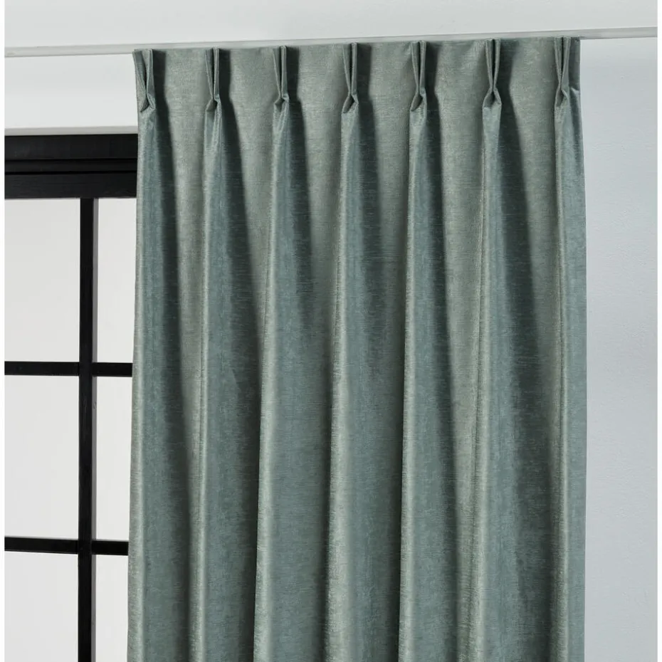 100% verduisterend gordijn Emma in de kleur groen heeft een zachte structuur. Deze chenille gordijnstof heeft een luxe uitstraling door de glansdraad. Dit black-out gordijn is aan de achterkant voorzien van een witte coating. Deze coating zorgt dat dit gordijn geen licht doorlaat en 100% verduisterend is. Daarom is de achterkant meestal wit en de voorkant is de gewone gordijnstof. Een black-out gordijn voelt wat stugger aan. Deze gordijnstof houdt, in tegenstelling tot dim-outs 100% het zonlicht tegen. Bij de confectie van deze kwaliteit kunnen kleine gaatjes ontstaan. Dit is inherent aan de stof en kan niet voorkomen worden. 140 cm breed.