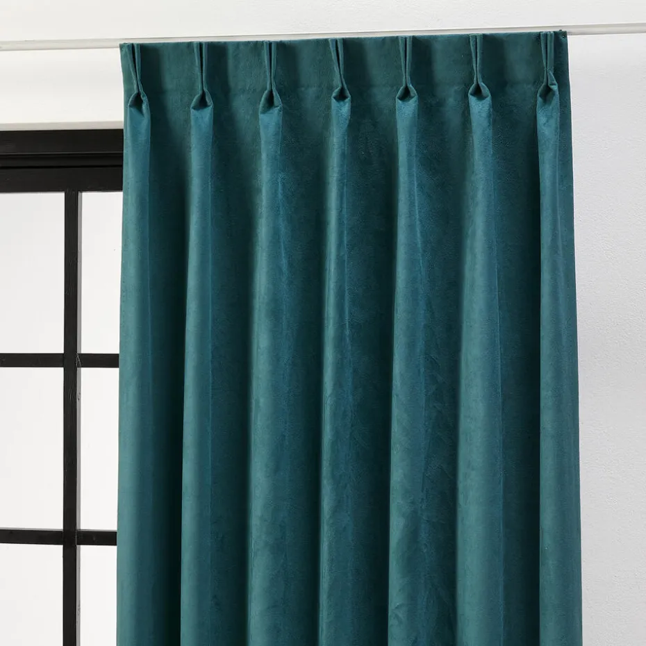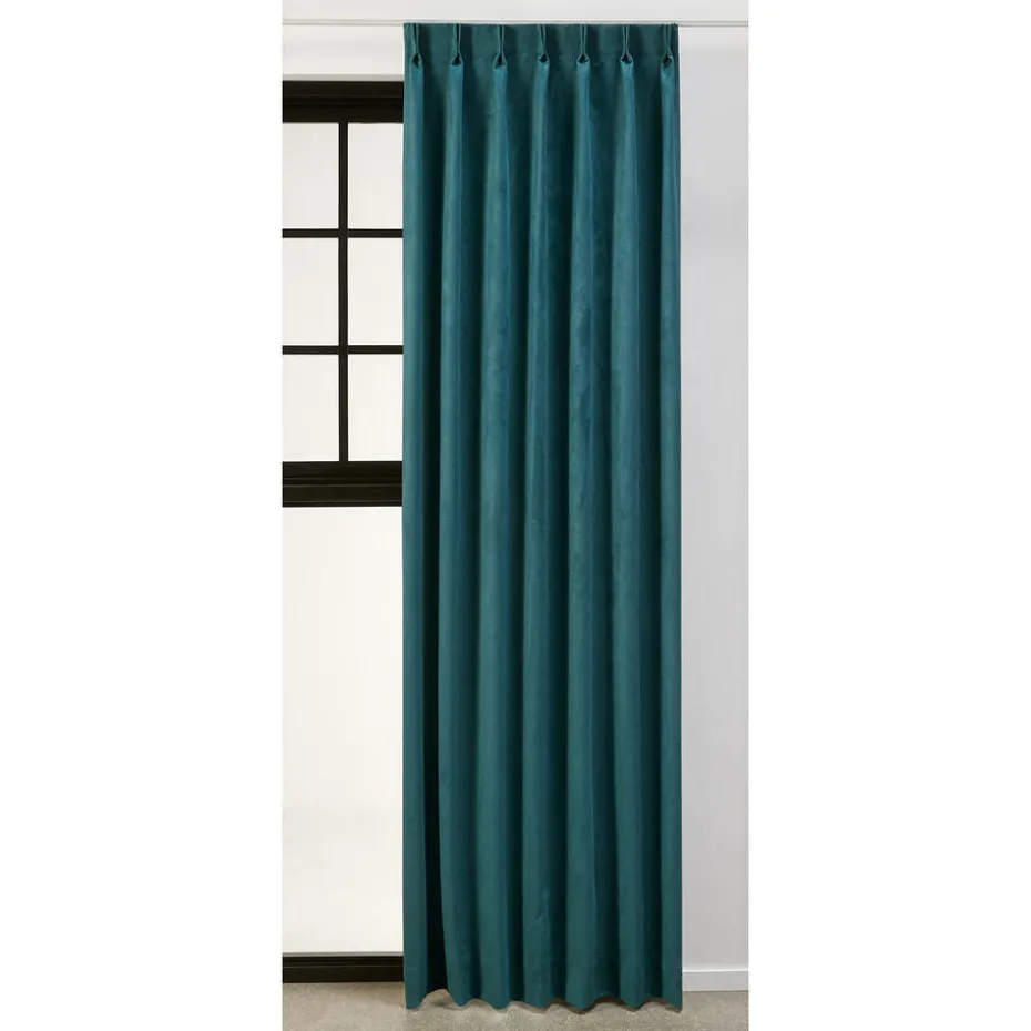 Lichtdoorlatende gordijnstof Patrick in de kleur blauwgroen. Het zachte velours zorgt voor een warme uitstraling. Patrick is gemaakt van 100% polyester. Soepel en kreukherstellend. Veloursgordijnen worden ook wel fluwelen gordijnen of velvet gordijnen genoemd. Deze gordijnen geven een warme en sfeervolle uitstraling aan jouw interieur. Een velours gordijn voelt erg zacht aan en heeft vaak een matte glans, waardoor het er luxueus uitziet. Daarnaast heeft velours ook als functie dat de kamer waar je deze gordijnen ophangt, veel minder hol klinkt. 145 cm breed.