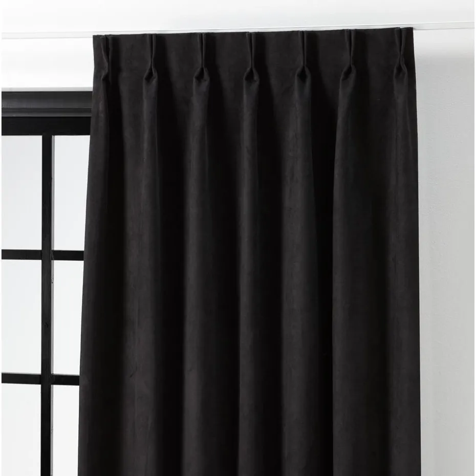 Lichtdoorlatende gordijnstof Patrick in de kleur zwart. Het zachte velours zorgt voor een warme uitstraling. Patrick is gemaakt van 100% polyester. Soepel en kreukherstellend. Veloursgordijnen worden ook wel fluwelen gordijnen of velvet gordijnen genoemd. Deze gordijnen geven een warme en sfeervolle uitstraling aan jouw interieur. Een velours gordijn voelt erg zacht aan en heeft vaak een matte glans, waardoor het er luxueus uitziet. Daarnaast heeft velours ook als functie dat de kamer waar je deze gordijnen ophangt, veel minder hol klinkt. 145 cm breed.