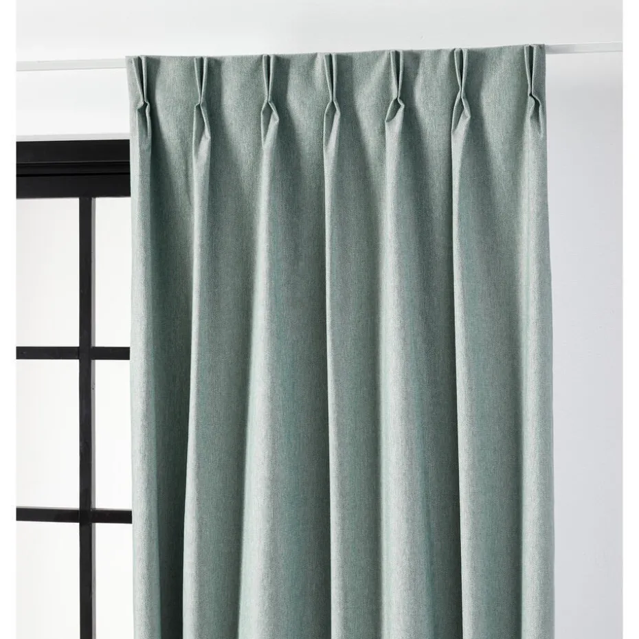 Verduisterend gordijn groenkleurig met matte uitstraling. Stevig, vormvast, slijtvast en kleurvast. De stof voelt wat stugger en scherpe vouwen zijn lastig verwijderbaar. Dit black-out gordijn is aan de achterkant voorzien van een witte coating. Deze coating zorgt dat dit gordijn geen licht doorlaat en 100% verduisterend is. Bij het verwerken van een 100% verduisterende voeringstof kunnen kleine gaatjes ontstaan bij het zomen. Doordat de stof zeer dicht geweven is, blijft de warmte binnen en zorgt het voor een extra isolerende werking. Deze gordijnstof wordt warmer dan glas, zodat het binnen met gesloten gordijnen lekker behaaglijk aanvoelt. Hierdoor ontstaat er ook minder tocht. Door te kiezen voor een dikke stof (o.a. Sandra, Muck, Romeo, Benji, Jasmijn, Muck, Lou of Cloé), kan de verwarming mogelijk een graadje lager. Laat de verwarming vrij bij het hangen van gordijnen, dit zorgt ervoor dat de opstijgende warmte niet tussen het gordijn en het raam terecht komt. Het is handig als je gordijn op de vensterbank eindigt. Daarnaast kun je ook denken aan een combinatie tussen plisségordijnen en een overgordijn voor een extra isolerende werking.