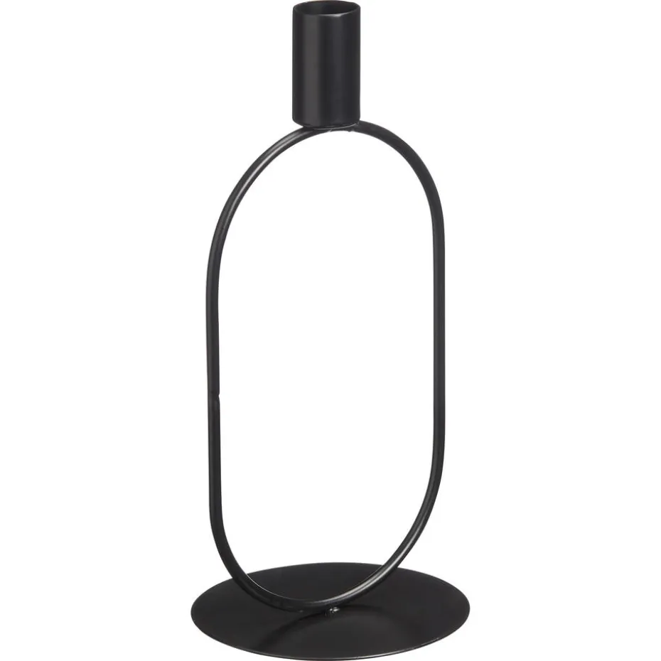 Deze zwarte Obi kandelaar is gemaakt van hoogwaardig metaal en voegt een warme sfeer toe aan je interieur.Met zijn ovale vorm straalt deze kandelaar tijdloze elegantie uit en creëert een warme sfeer.