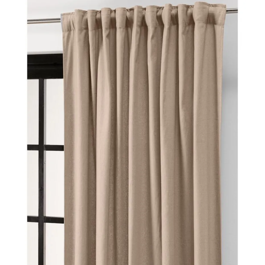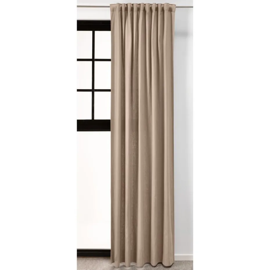 Kant en klaar gordijn taupe. Inclusief plooiband en lussen. Luchtig, vormvast en soepelvallend. Gemaakt van 100% gerecycled materiaal. 140×260 cm (bxh).