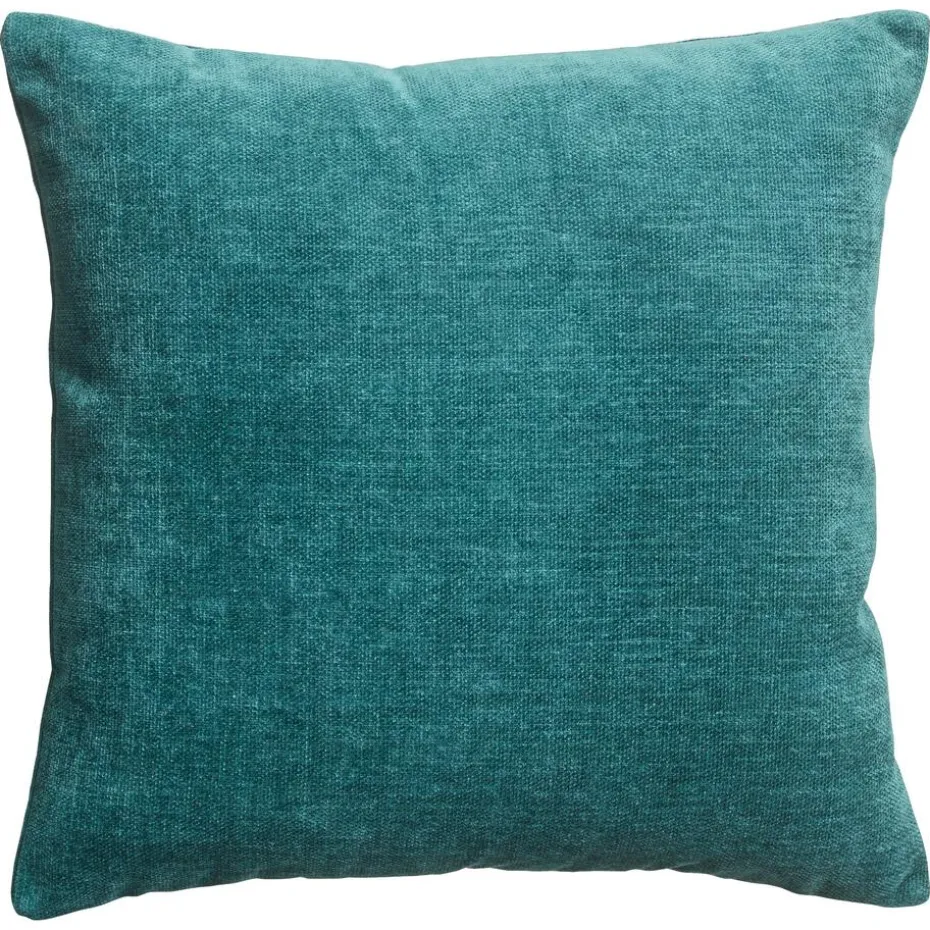 Modern kussen van zacht petrolkleurige stof met velours look. 45×45 cm (lxb).