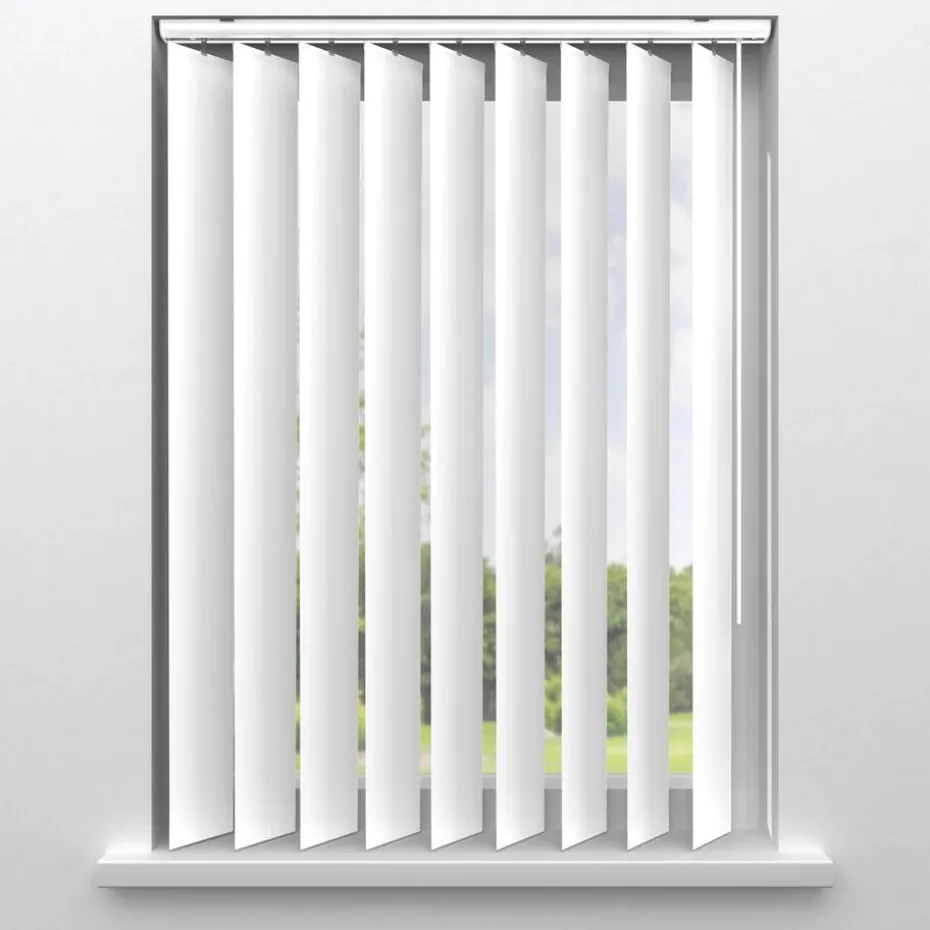 Verticale lamellen van wit PVC. De lamellen zijn 9 cm breed. De syteemkleur en de tuimelstok zijn wit. Kies zelf aan welke zijde je de lamellen wilt bedienen en bepaal eenvoudig de mate van lichtinval. De lamellen zijn vochtbestendig, eenvoudig schoon te maken en ook te gebruiken voor keukens en slaapkamers. Op maat te maken en met de juiste afmetingen te bestellen.
