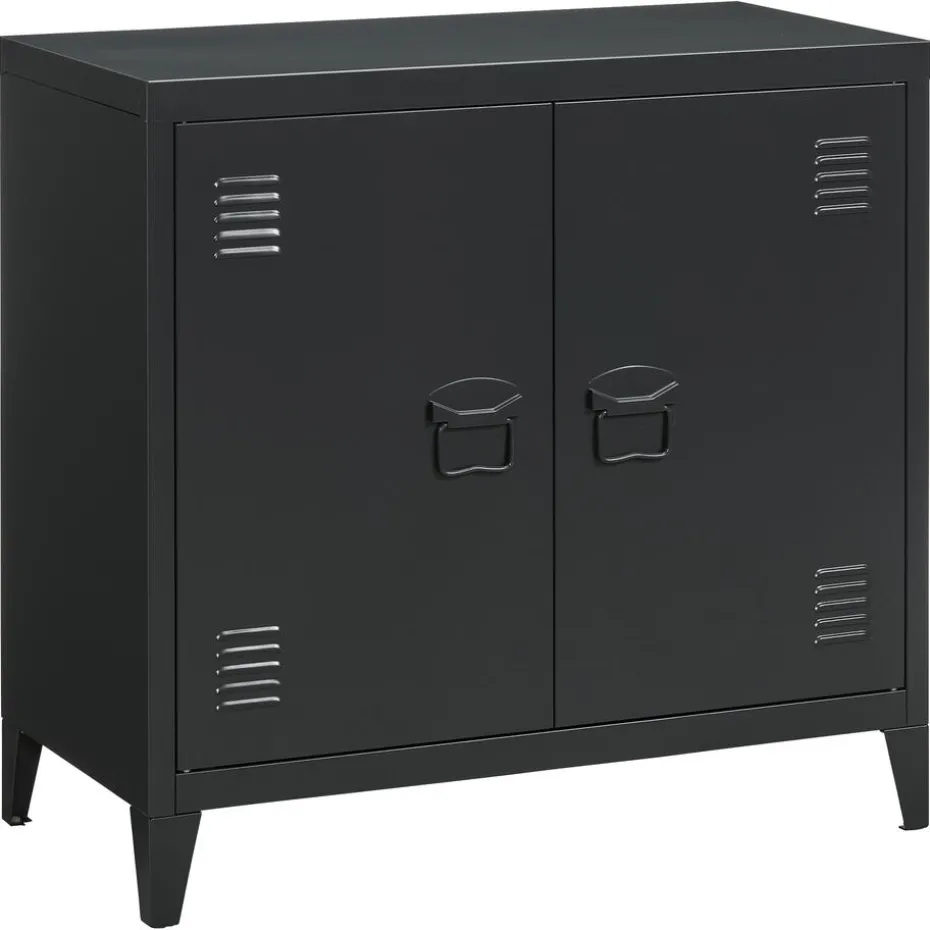 Stoere lockerkast van zwart metaal. 80x40x76 cm (lxbxh).