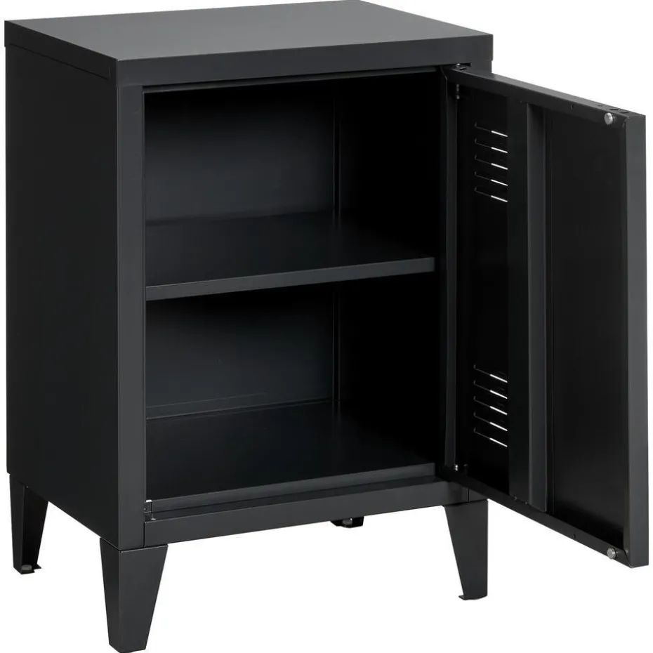 Stoere lockerkast van zwart metaal. 40x30x57 cm (lxbxh).