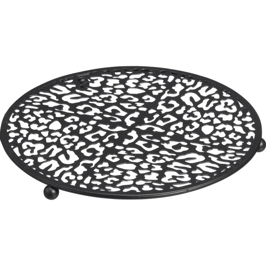 Metalen onderzetter in zwarte kleur. 20×1,5 cm (dxh).