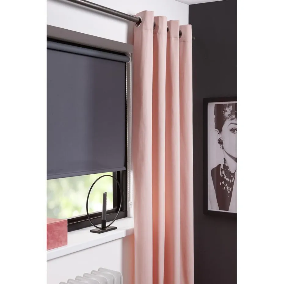 Verduisterend rolgordijn met meekleurende achterzijde. Ideaal voor slaapkamers. Eenvoudig zelf te monteren en in te korten. Eenvoudig met een vochtige doek te reinigen. Incl. schroeven, pluggen, montagesteunen, kindveiligheidsclip, montagehandleiding, inkortinstructie.