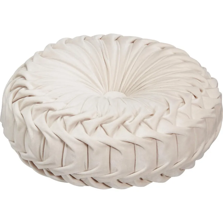 Populair Onore sierkussen in zand kleur. Het ronde kussen is gemaakt van 100% polyester en heeft een diameter van 38 cm.