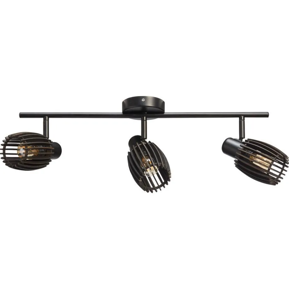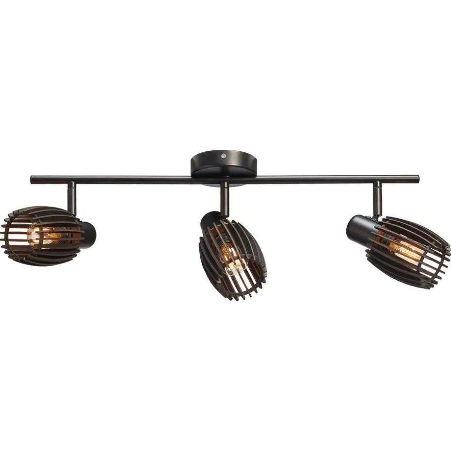 Zwart metalen spots met drie lampen. Fitting E14, exclusief. 61,8x10x15,4 cm (lxbxh).