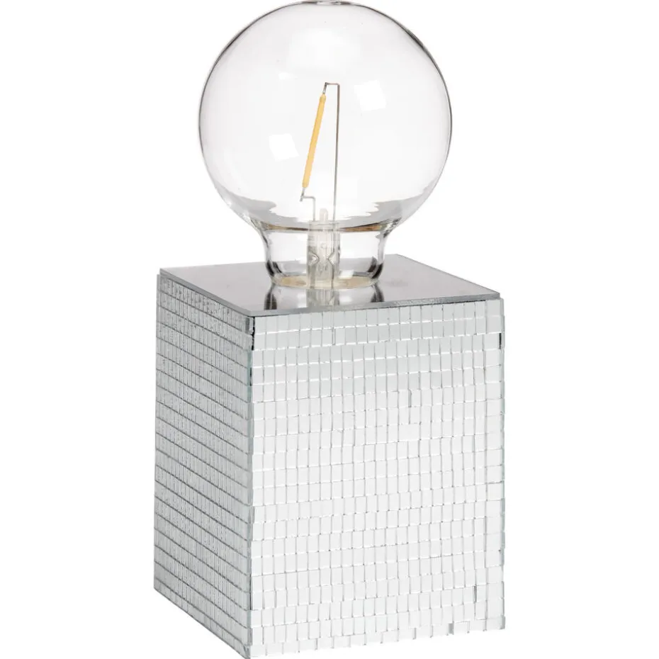 Tafellamp Vesta is een uniek tafellampje wat een echte eyecatcher in je ruimte is. Hij is gemaakt van hout bekleedt met glazen disco spiegeltjes. De lamp heeft een geïntegreerde LED lamp die werkt op 2x AA batterijen (niet meegeleverd).