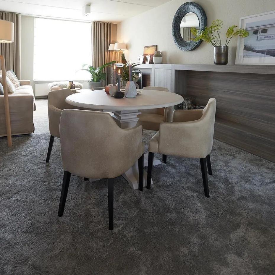 Tapijt grijs met actionback rug, daardoor stevig en duurzaam. Slijtvast, warmte isolerend en geluiddempend. Geschikt voor trappen met ondertapijt, vloerverwarming. Voor normaal woongebruik. 10 mm poolhoogte. 400 cm breed. Let op: tapijt van 10 strekkende meter of meer kan alleen worden afgehaald in de winkel. Wil je 10 strekkende meter of meer bestellen om bijvoorbeeld in verschillende ruimtes te leggen? Bestel dan meerdere kleine coupages.