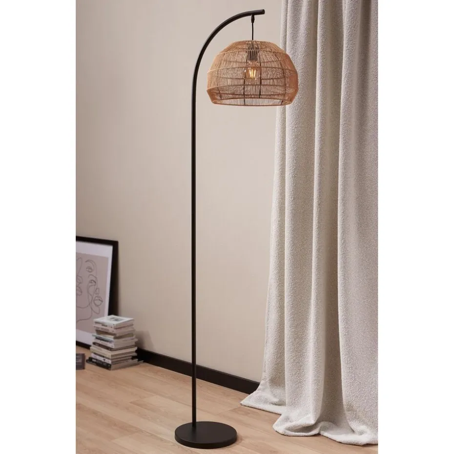 Vloerlamp met ronde kap van gevlochten touw. Grote fitting E27. 185 cm hoog.
